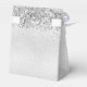 Elegant, bridal shower party favours. A stylish faux silver background with faux glitter and gold balloons. With the text: Bridal Shower and Thank You written with a modern hand lettered style script. Personalise and add a name and a date.