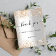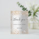 A thank you card for a Bridal Shower. A faux silver metallic looking background. With faux gold glitter, sparkles. On front large hand lettered script and the text: Thank You, your text, title and a date.