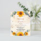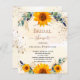 A white and golden watercolored background decorated with sunflowers, eucalyptus greenery and golden leaves and faux gold glitter dust. Personalize and add a name and party details.