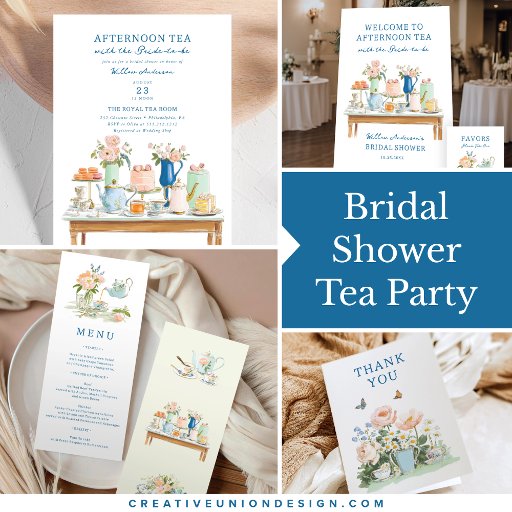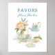 This elegant bridal shower tea party favors signs features soft blue typography and charming watercolor illustrations of teapots, cakes, macarons, florals, and vintage teacups. Perfect for an afternoon tea or high tea bridal shower, this classic and feminine design sets the tone for a refined celebration. Ideal for garden parties, tea rooms, and traditional bridal showers, with space to customize all event details.