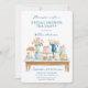 This elegant bridal shower tea party invitation features soft blue typography and charming watercolor illustrations of teapots, cakes, macarons, florals, and vintage teacups. Perfect for an afternoon tea or high tea bridal shower, this classic and feminine design sets the tone for a refined celebration. Ideal for garden parties, tea rooms, and traditional bridal showers, with space to customize all event details.