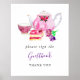 Cute watercolor bridal shower tea party guestbook sign poster with cute tea set illustration. If you need assistance with any of my designs, please message the designer, Kristine Lee, here on Zazzle. Designed and illustrated by Kristine Lee Designs www.kristineleedesigns.com