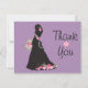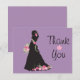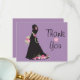 Send thanks for those who made your bridal shower a day to remember. Displayed on a purple background there is a silhouette of a bride. Her bouquet is pink and green as well as other elements. Place your order today!