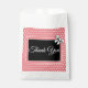 A pink and white thank you favour bag for bridal shower, wedding, and engagement gifts. Vintage look retro style inspired polka dots and bow design.