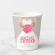 Elegant bridal dress with posy pink stylised roses floral and grey heart rain bridal shower disposable paper cup. Edit these cups with your own honouring bride-to-be's name. Ideal for use at a bridal shower party and matches the dress bouquet pink roses wedding set. © Original graphic art and design by Sarah Trett. www.mylittleedenweddings.com