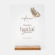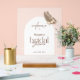 This stunning frosted acrylic sign comes complete with a stylish wooden block stand, offering an elevated and effortless way to display your welcome message. Its sturdy design ensures it's easy to place on any plain surface – from reception tables to guest book stations or gift tables – providing instant, elegant decor without the need for additional frames or mounts.