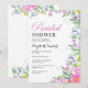 Romantic spring and summer bridal shower with wildflowers in purple, pink and white and lavender all in brushed script typography on an elegant soft light yellow editable background.