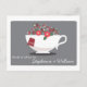 A fun activity for you to include at the bridal shower - place these cards on the tables and invite guests to give the newlyweds-to-be advice that is sure to be appreciated. Makes lovely little keepsakes to keep as well. Features a lovely china white teacup overflowing with pink, coral, and burgundy blossoms and set against a soft dove grey background on the front, with a personalised teabag display the bride and grooms initials too. Space on the back for all those little bits of wisdom for guests to share.