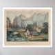 The Bancroft Library Presents: A distant view of fall with Indian encampment in foreground showing a Teepee, a woman with child, and adolescent and three adult males with weapons. Lithographs coloured and published by J. Gemmel (firm) btw. 1850 and 1875.
