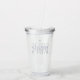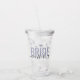Clear plastic reusable straw cup tumbler with "Bride AKA the Boss" in big modern and trendy letters and elegant calligraphy cursive signature font, with a diamond accent for fun bling. With a custom printed wedding date on the back, it's a perfect engagement gift, bridal shower or bachelorette party keepsake favour, or part of a coordinating set of bridal party gifts.
