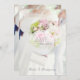 Adorable and editable wedding design with a beautiful bridal couple, holding a fresh flower bouquet in the background.
