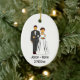 Celebrate love with our charming Bride and Groom Clipart Names Wedding Favour Ceramic Ornament, the perfect wedding favour to commemorate your special day! This adorable ornament features custom clipart illustrations of the bride and groom, along with their names and wedding date, creating a unique and personalised keepsake. Crafted from high-quality ceramic, this ornament is not only a delightful addition to your guests' homes but also a sweet reminder of the joyous occasion. Spread the love and thank your friends and family for sharing in your wedding day by gifting them this beautifully crafted and meaningful token.