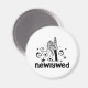 A black outline bride and groom and black text that reads "Newlywed" is featured on Newlywed T-shirts, tote bags, buttons, mugs, and other items, perfect gifts for the new bride and groom, great to wear on the honeymoon and months following the wedding!