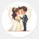 Includes 20 small stickers on one sheet. Adorable cartoon sticker featuring a couple in wedding attire sharing a tender moment against a sparkling heart backdrop.