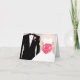 Elegant graphic groom in suit with bow tie and bride with veil holding a posy of stylised red roses card. Edit this pretty card with your own inside message, currently reads thanks. Unique design and graphic art by Sarah Trett.