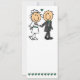 A stick figure bride and groom who were just married on wedding invitations you can customise yourself before ordering.