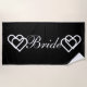 Bride Black White Hearts Beach Towel is a great way for every bride or bride to be to celebrate her wedding! The large beach towel has a black background with white hearts hooked together at the front and end of "Bride" which is also in pretty white cursive font design.