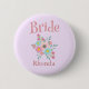 A lovely lilac colour button for the bride, this design features a fun text design that features "Bride" a pink and blue bouquet of flowers and your name written at the bottom. Use the template to customise. Purchase yours today!