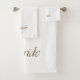 Bride, gold script elegant chic white wedding Bath Towel Set