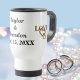 Bride & Groom Custom Name & Date Gold Love Hearts Travel Mug