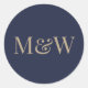Bride Groom Gold Initials Navy Classic Round Sticker