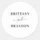 Customisable Bride & Groom Modern Wedding Favour Seal. Modern design shown in black text on white. Personalise the bride and groom names. Excellent for favour seals. We invite you to visit our Zazzle store, Simon & Grace to view the full wedding suite and more.