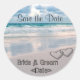 Bride & Groom Names Written in the Sand Classic Round Sticker