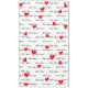 Bride and Groom script in black text repeating pattern. Scatttered red hearts against white background. Wedding typography for the couple's reception table. Original Artwork Design by TamiraZDesigns.