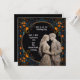 Bride & Groom Wedding Personalised Invitation on black with gold with a flower boarder.
