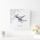 Envision the elegance of minimalistic design with delicate foliage shadows creating a mesmerizing backdrop for the names of the bride and groom and the date of their wedding. Each glance at this clock will evoke the joy and love shared on that unforgettable day.