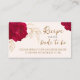 Bride in bloom theme bridal shower recipe enclosure card features roses red and maroon colour with gold floral and botanical pattern.A perfect gold and off white colour background with red roses floral arrangement