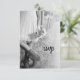 Customise the charming Bride in Cowboy Boots and Sunflowers Country Wedding RSVP Card with your marriage reply date and pair with the matching ranch theme wedding invitations to create a coordinated stationery set. These informal yet elegant custom western wedding r.s.v.p. response cards feature a quaint black and white farm style photograph of a cowgirl bride wearing a white lace wedding dress with leather cowboy boots carrying a bouquet of sunflower blossoms with a rustic wooden barbed wire fence and barn with silo in the background.