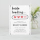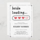 Simple, minimalist bride loading bridal shower invitation with red hearts. Personalise it with your event details.