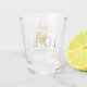 Shot Glass | Bride | Mrs. Love text with a Gold Heart and date. Monogrammed names Wedding totes for the bridal party