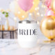 A gift for any bride-to-be. It has a beautiful design with the word "Bride" printed in an elegant font. Personalise the back with the bride’s name. The tumbler can be used for wine, cocktails, or any other beverage of your choice. This wineglass will make a wonderful addition to any bridal shower or bachelorette party, or even as a special keepsake for the bride to remember her special day.