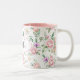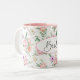 Bride coffee mug is shown in a pretty rose floral print, Bride text.