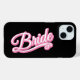 This cute iPhone case is accented with Bride, written in fancy pink and white type on a black background making it the perfect gift for the new bride.