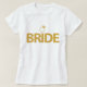 Bride shirts (white womens plus size) with ring and gold sequins text (faux, printed on shirt as an image).