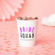 Cute, simple, stylish "Bride Squad" quote art paper cups with modern, minimalist typography in black and hot neon pink in a cool trendy style. The slogan, name and role can easily be personalised with the names of your bridal party, for example, bride, bridesmaids, flower girls, Mother of the Bride, Glam Squad & so much more! The perfect matching, coordinating accessories for team bride for a bridal shower, bachelorette party, or morning of the wedding with a super cute one or a kind personal touch!