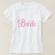 Basic Classic T Shirt in White printed with Bride in Pink text typography lettering and digital graphic design by TheFabricSeal print on demand shop at Zazzle.com #ZazzleMade https://www.zazzle.com/store/thefabricseal TheFabricSeal©️Original.