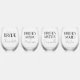 This set of 4 stemless wine glasses is great for your Bachelorette party or wedding reception. They make great party favours and keepsakes. To edit the text on both sides click on the personalise button.