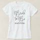 Modern and casual chic black calligraphy script "Bride to Be" women's bridal wedding tee shirt features custom text that can be personalised with the bride's first name. Perfect for the bride to wear at the bachelorette party and the wedding weekend!