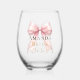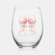 Bride to be blush pink bow pearls Bachelorette Stemless Wine Glass