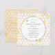 Bee-themed gold bridal shower invitation featuring a gold honeycomb pattern and buzzing bees. Personalise with your information or click "Click to customise further" to edit font styles, size and colours.