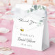 Both classic and cute for a bridal shower. Chic white background decorated with watercolored eucalyptus greenery and a happy smiling bee. With the text: Bridal Shower and Thank You written with a modern black coloured hand lettered style script. Personalise and the bride to bee name and a date.