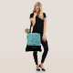 This lovely fashion forward tote bag shows the word "Bride" in a Aqua text colour over Black with the upper tote bag in Aqua-Turquoise with Black vines and scrolls all over. Has plenty of room for personalised text. Graphics and text are on both sides of this tote bag. Black handle. Customise further or buy as shown.