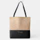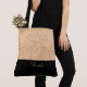 This lovely fashion forward tote bag shows the word "Bride" in a Golden-Caramel text colour over Black with the upper tote bag in Peach with petite Golden stars print all over. Has plenty of room for personalised text. Graphics and text are on both sides of this tote bag. Black handle. Customise further or buy as shown.