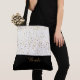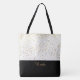 This lovely fashion forward tote bag shows the word "Bride" in a Golden-Caramel text colour over Black with the upper tote bag in White with petite Golden stars print all over. Has plenty of room for personalised text. Graphics and text are on both sides of this tote bag. Black handle. Customise further or buy as shown.