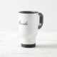 Bride Travel Mug shown in White. You can custom finish this mug by adding names,dates or change fonts and colours.