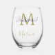 Bride tribe monogram bridal shower simple golden p stemless wine glass